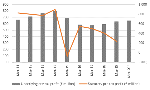 “Some investors will also note how a second consecutive increase in adjusted, or underlying pre-tax profits (Sainsbury’s preferred metric) compares to a third straight drop in statutory measures, which do not strip out allegedly one-off costs and other expenses. In the year to March 2019, these included the Asda advisory fees but also investment in Sainsbury’s Bank, restructuring costs relating to Argos and the core business, property expenses and pension contributions.