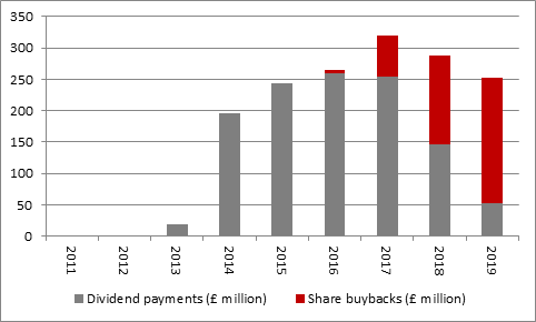 “Second, the firm’s land-buying skills, focus on high-end properties in the South East and operational acumen mean that its operating margins are high, at 26%, and those margins in turn support the cash flow that funds share buybacks and dividends. Their combined value is due to come to £280 million a year until April 2025, a £1.78 billion return on a company whose market capitalisation is £4.6 billion, although the company does caveat this by saying a material change in the operating environment could curtail the cash-return plan.