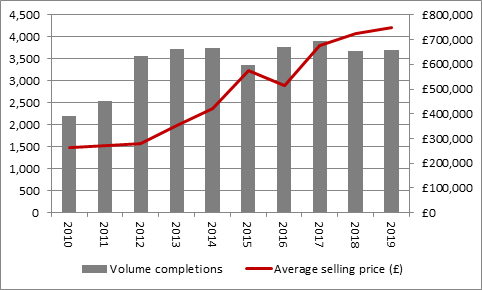“This shift may reflect how completions last year (at 3,698) are no higher now than they were six years ago (3,712 in the year to April 2013). Prices have more than doubled in the interim and the issue of affordability, coupled with wider economic and political concerns, could be holding back volumes and not just at Berkeley, even allowing for how low interest and mortgage rates are and how much support the Government is offering to first-time buyers.