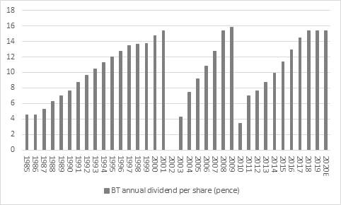 “That 15.4p figure equates to a dividend yield of 7.4%, although investors still need to make sure that the payment can be sustained and that BT is not strangling itself so it can avoid a repeat of the dividend cuts of 2002 and 2010.
