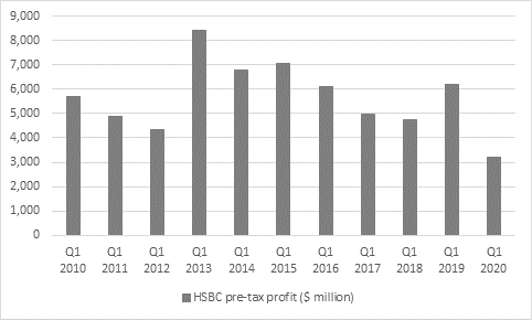 “Throw in global Governments’ desire for banks to offer more credit and potentially not pull the rug on lenders during these difficult times and this is a very difficult environment for banks. This is reflected in HSBC’s lowly 4.2% return on tangible equity (RoTE) in Q1, a figure which is clearly influencing how investors are valuing the bank.