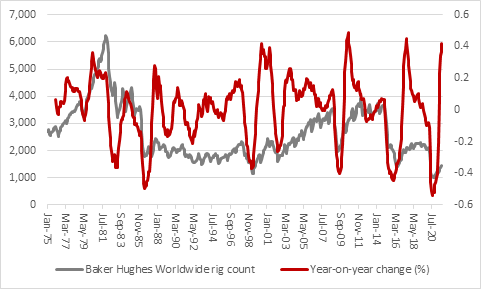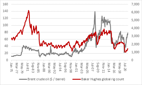 “The global rig count in September was up 42% year-on-year but activity still seems very subdued compared to prior surges in oil and gas prices.