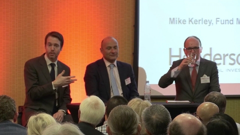 Russ Mould, AJ Bell Investment Director leads the panel discussion with Mike Kerley from Henderson Global Investors and Andrew Walsh from UBS Asset Management