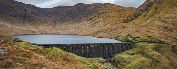 Cruachan is effectively a giant battery produced by two reservoirs which sit between a hanging valley.